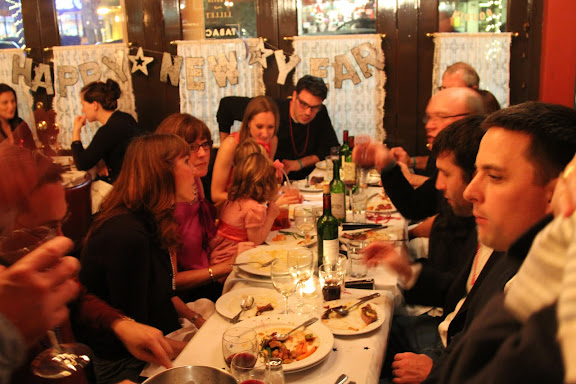 Then we all walk a few blocks for dinner at Sam's... table for 25