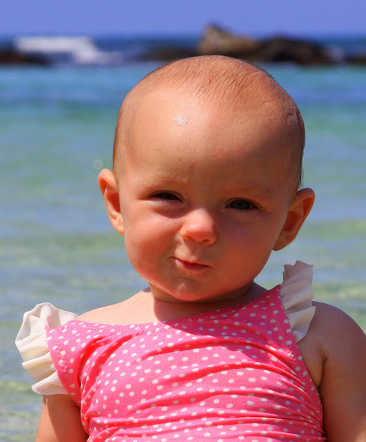 /Maisie is swimming in the ocean, lounging by the pool, lunching with Mom and Christian and having a ball at Hualalai!! We miss Dad and Francie of course but are soaking up some sun and girl time for one more day :) Maisie has been so much fun to have some one-on-one time with- she is giggling, belly laughing and working on turning her belly crawl into all fours movement. Here are a few beach pictures from yesterday...