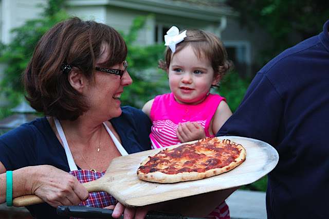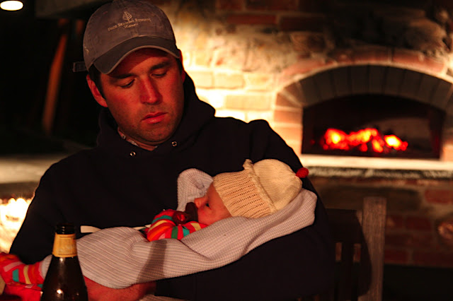 /Sunday night we walked over for pizza dinner at my parents house... with just the six of us! It is always a treat to have pizza with a "small group" so you get to make all your favorites and don't have to share them :)... no offense to my siblings who we missed of course at Sunday Night Dinner this week! Maisie was sporting Jannie's cupcake hat Francie used to wear and looked too cute- she is getting so much more alert and less bobbly-headed. Francie made her very first "own pizza"