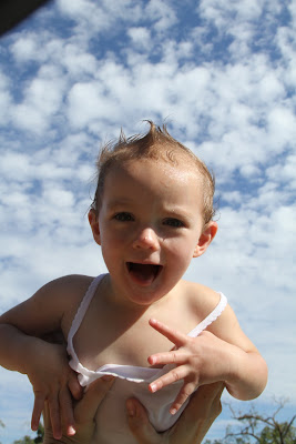Francie cooling off in her unders. The Heiser boys were so sweet to make sure the girls didn't jump in the deep end. The girls had been splashing around in their dresses before they got soaked and I striped them down and the boys go "aw how cute they even have matching, er, ah, what are those?"... "Their UNDIES" Jannie told them :)