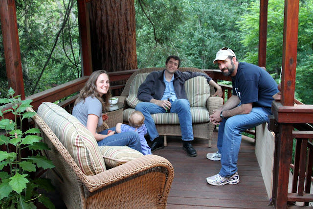Heff, his brother Mark and Aunt Sarah on the patio- more plywood gate serves as a seat